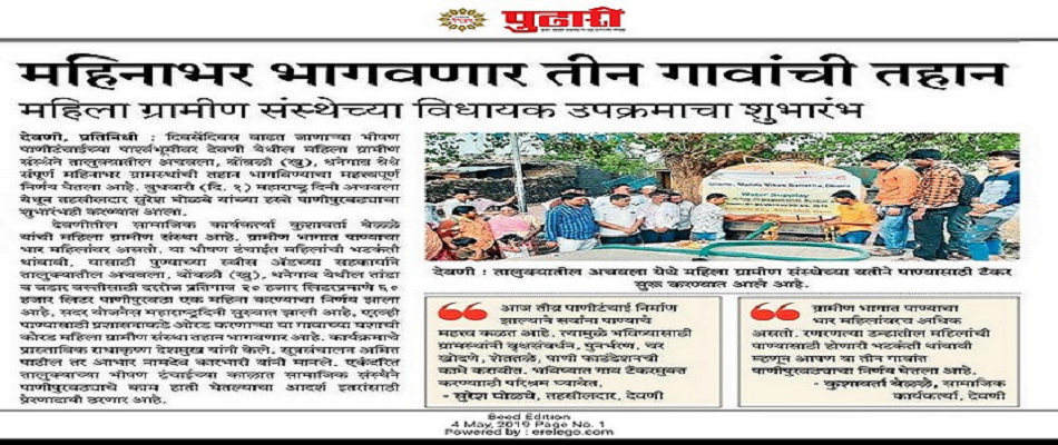 We have selected 15 villages in Deoni block for sustainable development measures with women, youth and adolescent girls to address issues of drinking water, economic development, implementation of government schemes, build up confidence amongst adolescent girls through a process of training and capacity building with a view to holistic development of rural communities.